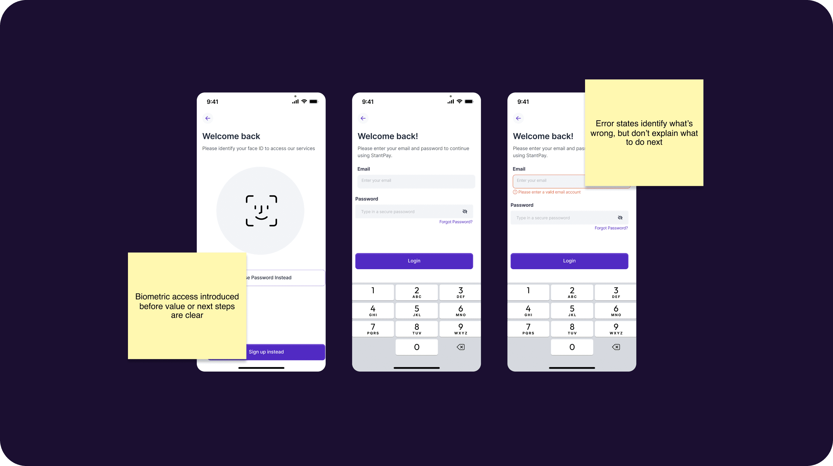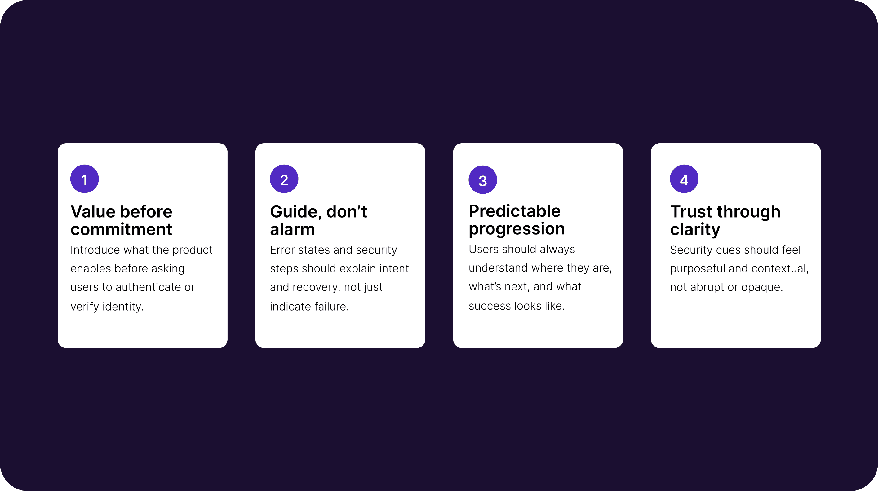 Design principles derived directly from onboarding and authentication discovery findings.