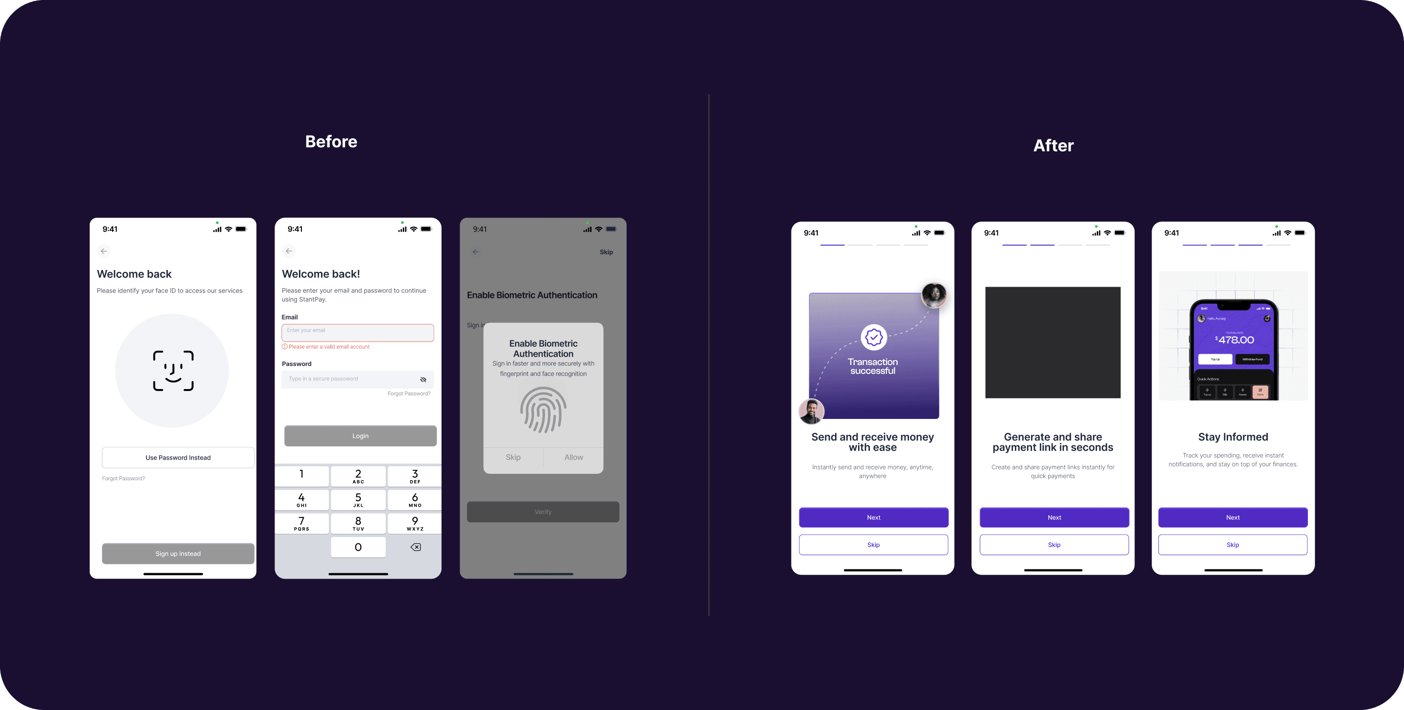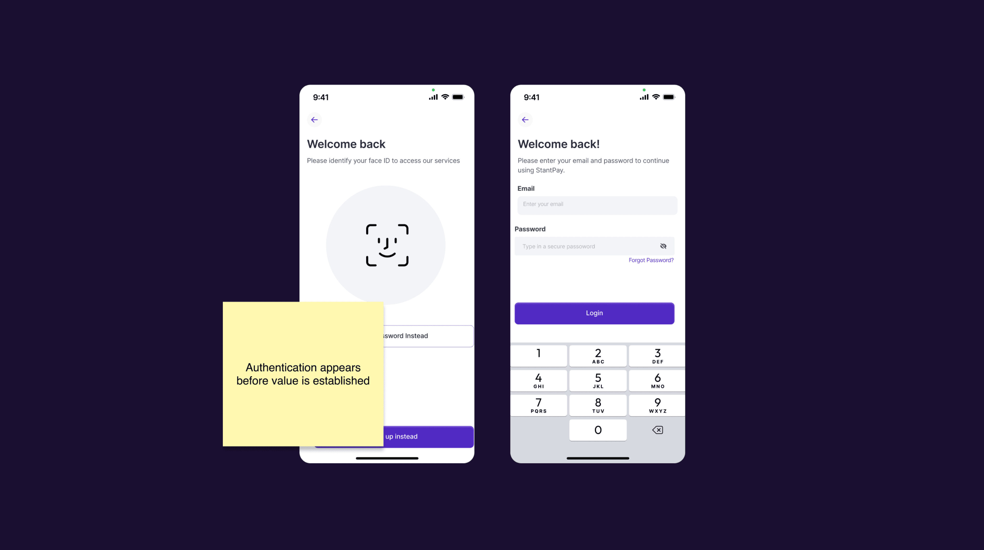 The first interaction with StantPay required users to authenticate before they understood what the product enabled, how security worked, or what would happen next. For new users, this created hesitation at the exact moment the product needed to establish trust and momentum.