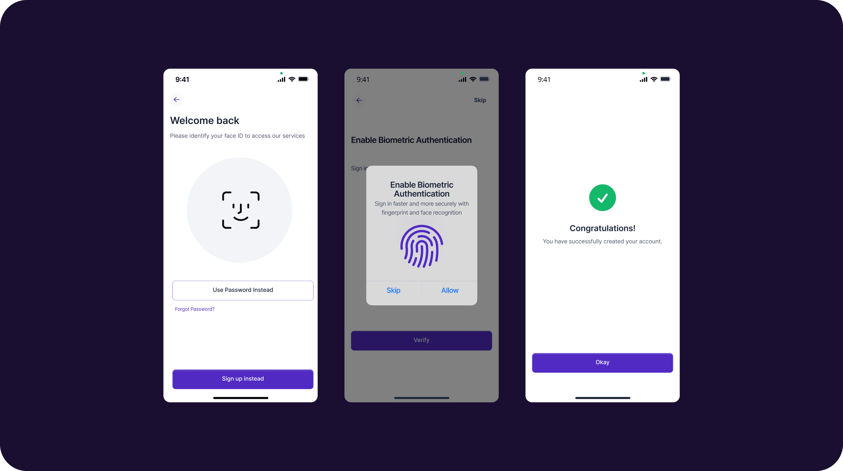 Security-first requirements Authentication steps (biometrics, OTP, credentials) were mandatory early in the experience and could not be removed.